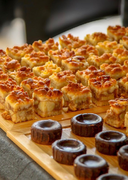 Variées : petits pains, pièces cocktails froides et chaudes, petites salades, mini plat chaud, pièces sucrées... Un buffet réconfortant et facile à déguster !